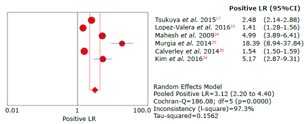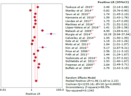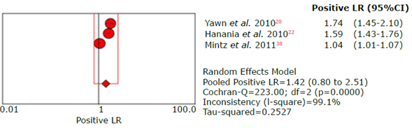 Figure 20: Forest plot of positive likelihood ratio of the LFQ questionnaire for the diagnosis of chronic obstructive pulmonary disease.