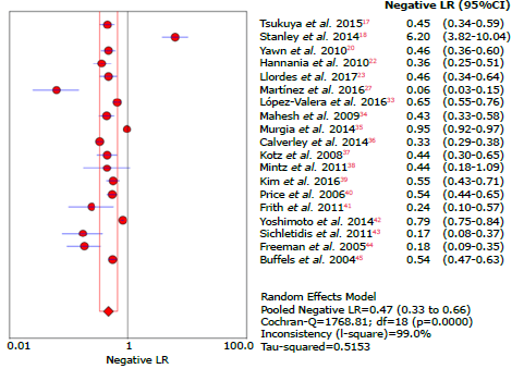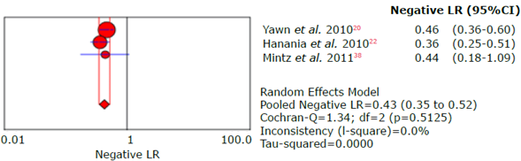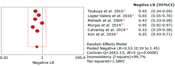 Figure 21: Forest plot of negative likelihood ratio of the LFQ questionnaire for the diagnosis of chronic obstructive pulmonary disease.