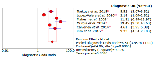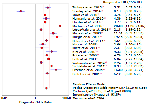 Figure 15: Forest plot for diagnostic odds ratio of the COPD-SP questionnaire used to diagnose chronic obstructive pulmonary disease.