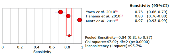 Figure 11: Forest plot for sensitivity of the COPD-SP questionnaire used to diagnose chronic obstructive pulmonary disease.
