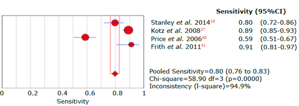 Figure 25: Forest plot for sensitivity of the CDQ questionnaire used to diagnose chronic obstructive pulmonary disease.