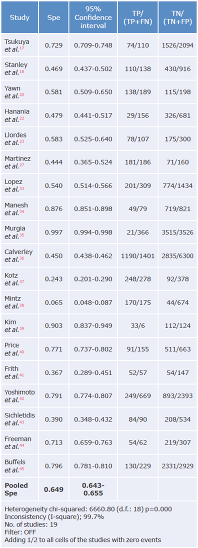 Table 18: Specificity analysis of the CDQ questionnaire used to diagnose chronic obstructive pulmonary disease.