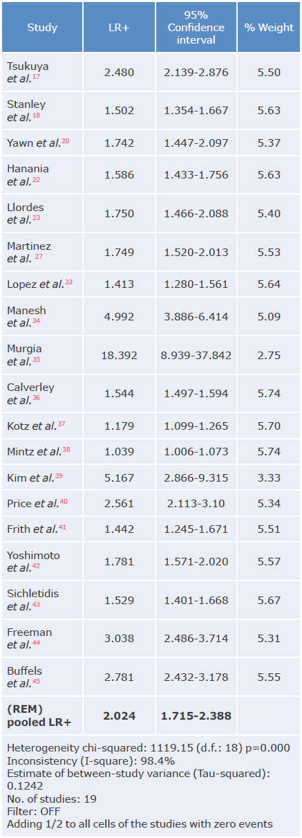 LR+: positive likelihood ratio; REM: random effects model. Source: Own elaboration.