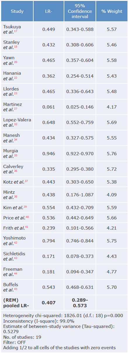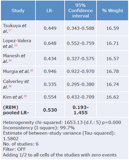 LR-: negative likelihood ratio; REM: random effects model. Source: Own elaboration.