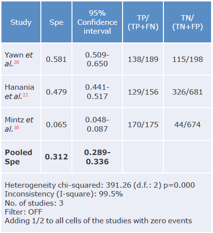 Table 4: Specificity analysis of the questionnaires used to diagnose chronic obstructive pulmonary disease.
