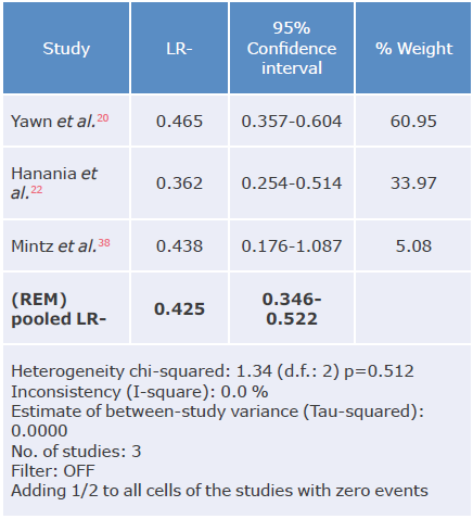 Table 6: Negative likelihood ratio analysis of questionnaires used to diagnose chronic obstructive pulmonary disease.