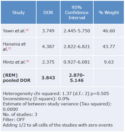 Table 21: Diagnostic odds ratio analysis of the CDQ questionnaire used to diagnose chronic obstructive pulmonary disease.