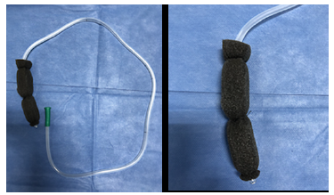 Figure 6: Handcrafted vacuum-assisted closure device made from polyurethane foam.