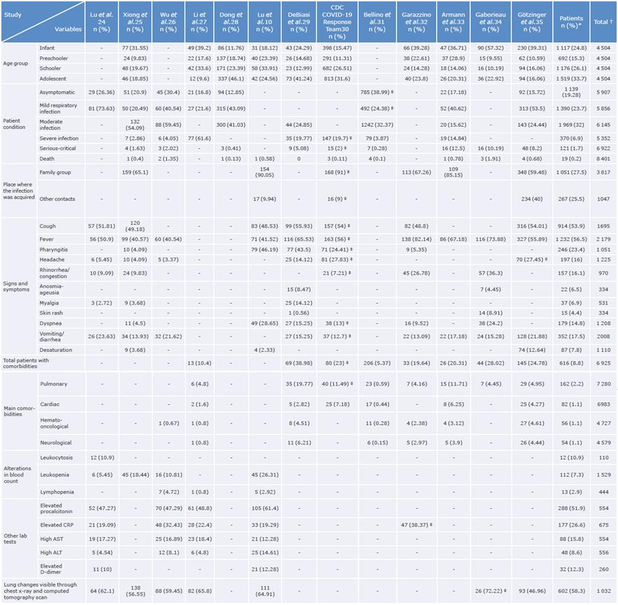In this context, the objective of this review is to estimate the epidemiological profile of pediatric patients with COVID-19, as well as their clinical, laboratory and radiological characteristics.