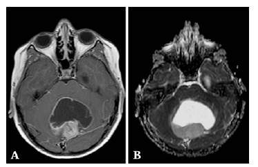 Magnetic resonance imaging (MRI) is the test of choice to study posterior fossa tumors; nevertheless, structural findings can be nonspecific when classifying them and differentiating their possible histological grades, especially in scenarios that may represent a diagnostic challenge, such as differentiating between a pilocytic astrocytoma and a medulloblastoma.1 In this regard, it is critical to assess the usefulness of radiological findings derived from advanced MR imaging, such as the DWI (diffusion-weighted imaging) sequence and the ADC (apparent diffusion coefficient) map, which provide functional information on tumor behavior and help establish an adequate differential diagnosis that allows predicting the histological subtype of the tumor.5-9