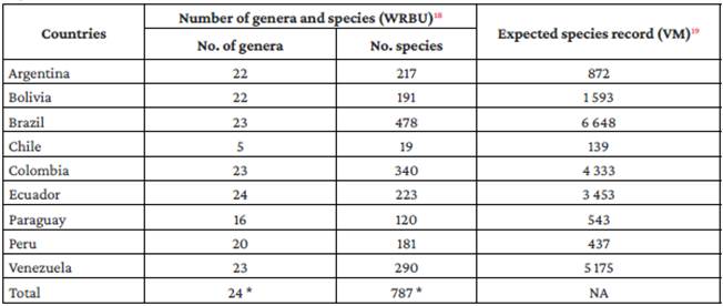 WRBU: Walter Reed Biosystematics Unit; VM: VectorMap; NA: Not applicable. * Total number of genera and species reported in South America. Source: Own elaboration.