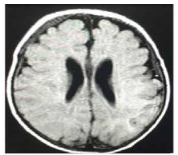 At 27 days of life, the patient had a seizure with recurrent focal episodes that later became generalized and resulted in post-seizure paralysis in the right upper limb, requiring the administration of midazolam (single dose of 0.2 mg/kg) and the initiation of maintenance doses of phenobarbital (10 mg/kg/day) and valproic acid (30 mg/kg/day), medications that led to the resolution of the seizure. Once he was stable, on the 28th day of life, a lumbar puncture was performed, which allowed to rule out neuroinfection. Then, at 30 days of life, a contrast-enhanced magnetic resonance imaging (MRI) scan of the brain was performed, and no abnormal findings were observed (Figure 3).
