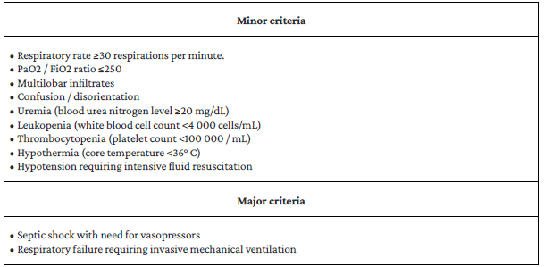 Table 1: Criteria for severity of community-acquired pneumonia.