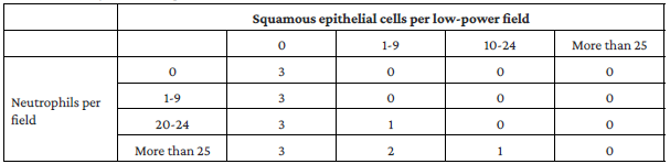 Respiratory tract specimen quality should be judged based on the Murray & Washington criteria,18 and the report should be interpreted only if the specimen result is category 2 or 3. See Table 2.