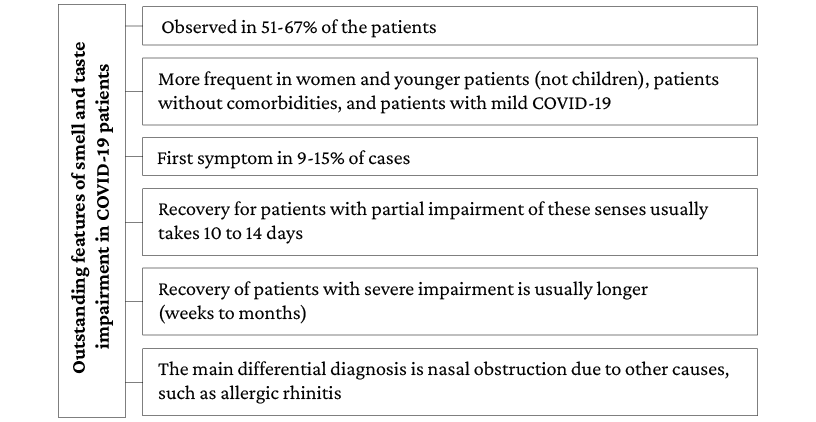 80.Lee Y, Min P, Lee S, Kim SW. Prevalence and Duration of Acute Loss of Smell or Taste in COVID-19 Patients. J Korean Med Sci. 2020;35(18):e174. https://doi.org/ggvwx9.