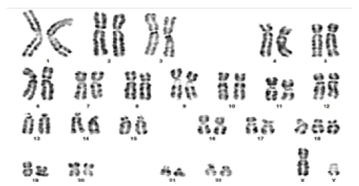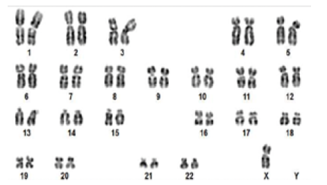 Figure 3: Patient 5. Karyotype with G-banding, 45,X indicating female fetal sex with monosomy X, typical of Turner syndrome.