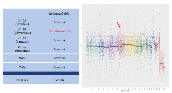 Figure 2: Patient 1. Noninvasive prenatal test result. Female fetal sex.