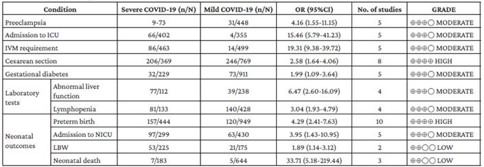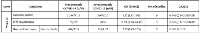 On the other hand, Wei et al. 29 analyzed the results of systematic reviews comparing outcomes in pregnant women with severe and mild COVID-19 disease. (Table 5)