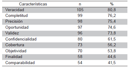 Las principales características de la información de mortalidad reconocidas por los participantes fueron: veracidad, completitud, precisión, oportunidad y validez (Tabla 2).