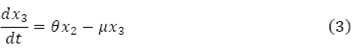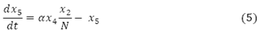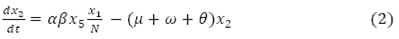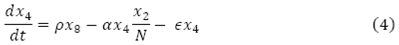 La dinámica se interpreta mediante las siguientes ecuaciones diferenciales ordinarias no lineales de acuerdo a el diagrama de compartimientos del proceso infeccioso, con