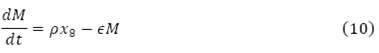 De forma similar, esta ecuación diferencial, representa el cambio de la población total de mosquitos con respecto al tiempo, donde, ϵM es el flujo de mosquitos adultos que mueren por causas naturales. Se considera la función periódica,