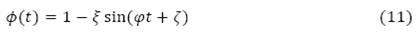frecuencia angular del ciclo de proliferación del mosquito, correspondiente a un período de 52 semanas, ζ ángulo de fase para el ajuste del pico estacional para los mosquitos.