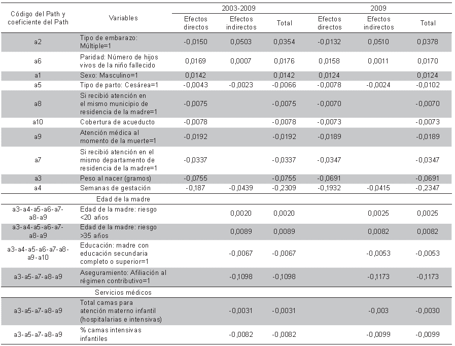Se aplica el Path análisis utilizando las características del niño y de la madre en los registros individuales de nacimiento y defunción infantil, y la disponibilidad de camas materno infantil entre 2003 y 2009.