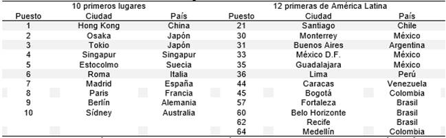 Fuente: Escuela de Economía de Londres (2013), Nota: para Suramérica, se toman las 12 primeras, entre las que está Medellín.