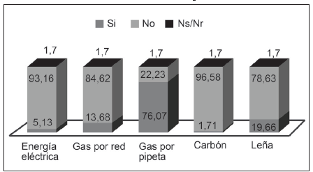 Figura 1: Distribución porcentual según fuentes de energía utilizadas en el hogar