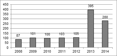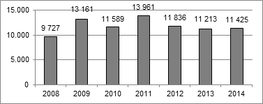 Figura 5. Número: de casos ETA: 2008 a 2014
