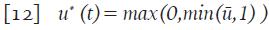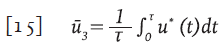 que corresponde al valor medio de la función u * sobre el intervalo [0,τ], de este modo, el control sub-óptimo ū 3 es un control constante. Con los parámetros de la Tabla 1, se obtuvo la función de control óptima (línea continua gruesa) y calculado su valor medio en un intervalo de 600 días, se obtuvo ū 3 =0.5342 (guiones y puntos)( Figura 4).