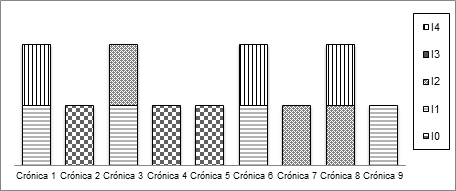 El análisis de las nueve crónicas, mostró para cada uno de los componentes de la crónica, los siguientes resultados: