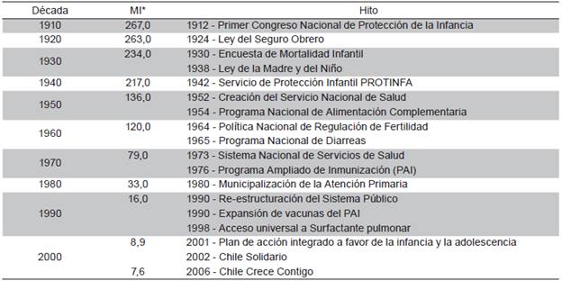 A continuación, en la Tabla 1 se resumen los principales hitos de política pública que a lo largo del siglo XX impactaron en la Tasa de Mortalidad Infantil en Chile.