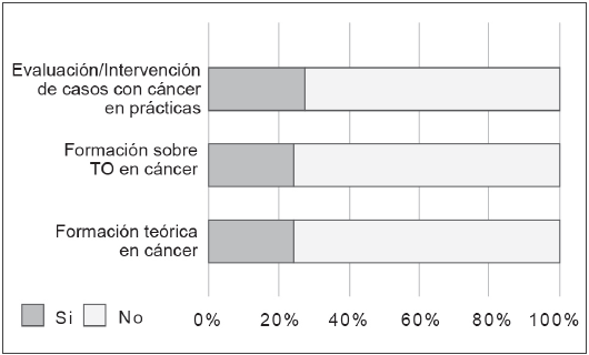 Figura 1: Formación en cáncer y manejo de casos oncológicos entre estudiantes de práctica de un programa de terapia ocupacional