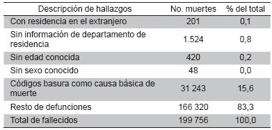 Finalmente, 199.381 casos resultaron útiles para el análisis (99,8 % del total de fallecidos registrados en el archivo publicado por el DANE).