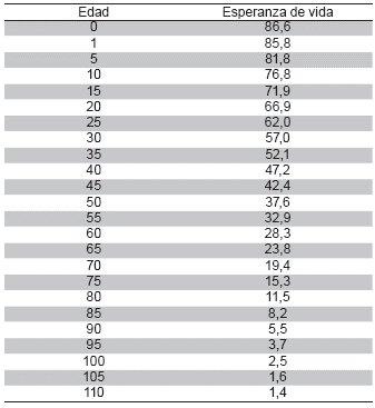 Tabla 2: Esperanzas de vida por grupos de edad utilizadas en el cálculo de los APMP en el estudio mundial por países GBD2013 realizado por los investigadores del IHME
