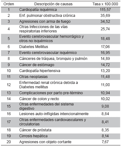 Tabla 4: Primeras veinte causas básicas de muerte (tasa x 100.000). Colombia ámbito nacional y ambos sexos, 2012