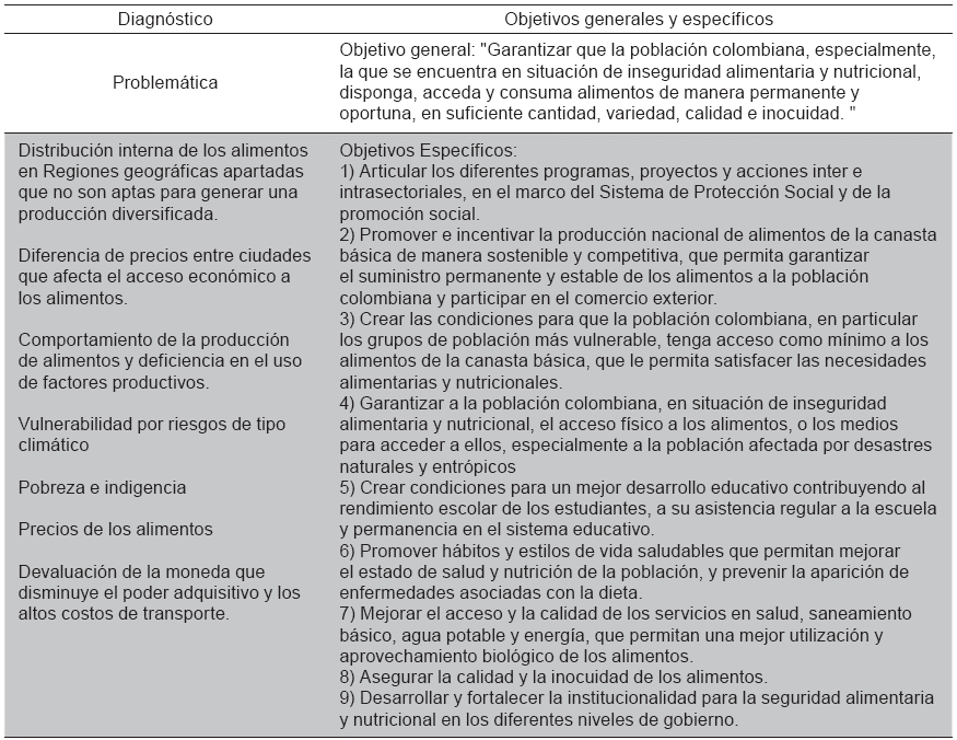 To evaluate the Food and Nutrition Security Policy of Colombia (PSAN by its acronym in Spanish).