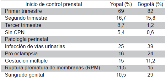 Tabla 1: Inicio de controles prenatales y patología perinatal reportada