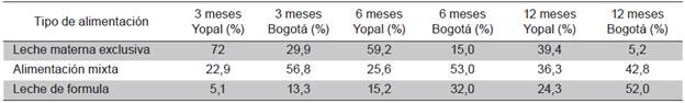 En cuanto al tipo de alimentación, a las 40 semanas se logró lactancia materna exclusiva en un 76% de los pacientes, 98% directamente del seno. En los primeros seis meses el porcentaje de lactancia materna exclusiva fue de más de la mitad (Tabla 5).